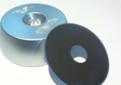前の記事はこちら(LED丸型台 チェンジカラータイプ – ミラー面のディスプレイ台) ガラス製の鏡面が両面テープで固定されています。 素手ではがすのは難しいぐらいしっかりとくっついていました。